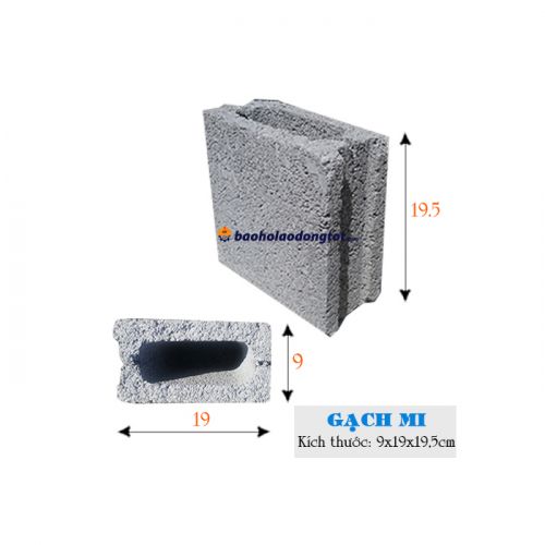 Gạch block 9x19x19.5cm hay còn gọi là gạch mi, gạch đờ mi làm từ nguyên liệu chính là đá mi, xi măng và cát sản xuất bằng dây chuyền máy ép thủy lực và đóng rắn tự nhiên. Gạch block đơ mi có kích thước rộng bằng ½ viên gạch block xây tường 9x19x39 nên nó sẽ hỗ trợ cho việc xây dựng hoàn thiện. Có nghĩa là khi xây gạch block 9x19x39 xo le, do đó ở cuối của tường sẽ bị thiếu 1/2 viên gạch và gạch mi này sẽ bù vào chỗ còn thiếu đó làm cho bức tường hoàn thiện.